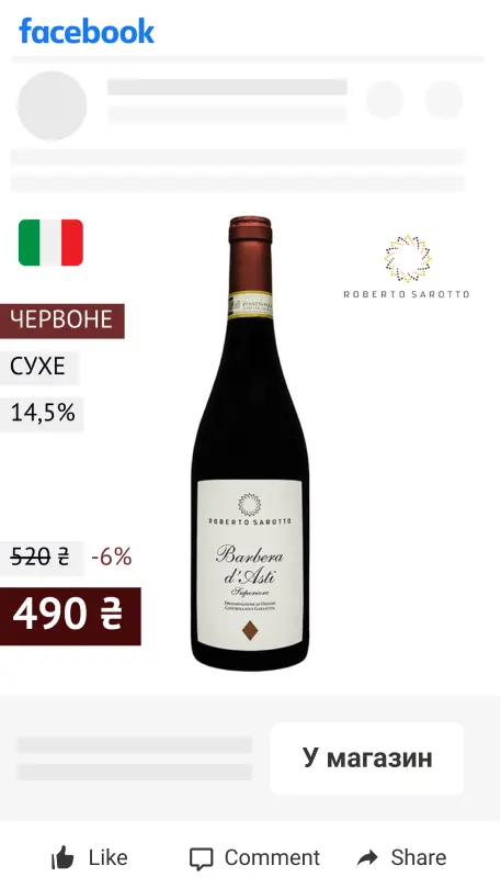 Предположим, вы любите итальянские вина... и не какие-либо, а только вина от определенного производителя и только красные сухие. Какое из Facebook объявлений ниже привлекло бы ваше внимание?
